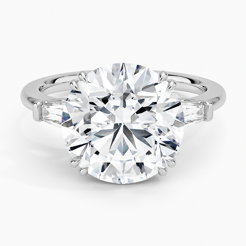 Experience unparalleled luxury with this breathtaking 14.06 carat IGI certified lab grown diamond engagement ring. The stunning round brilliant center stone is beautifully complemented by elegant tapered baguette side stones, all expertly set in lustrous 14K white gold.