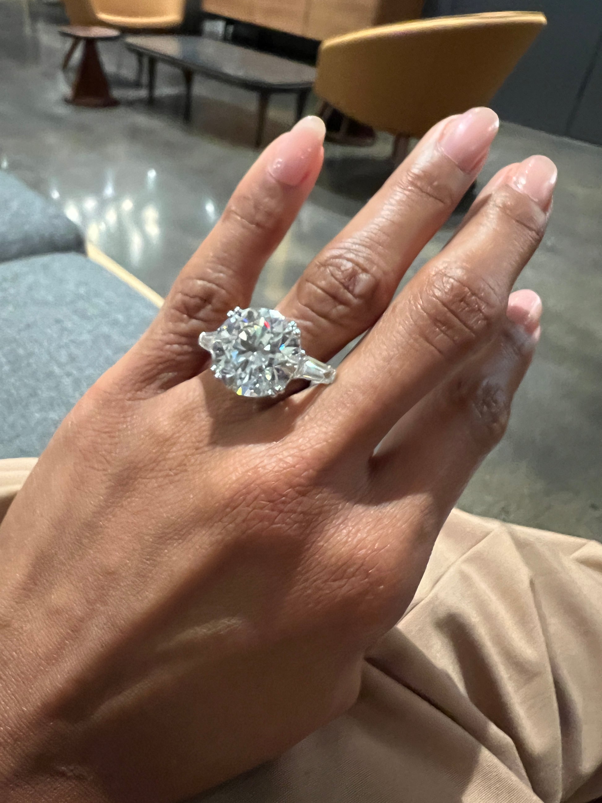 Center Stone: Round 14.06 SI1 G 100% eye clean, faces up white
